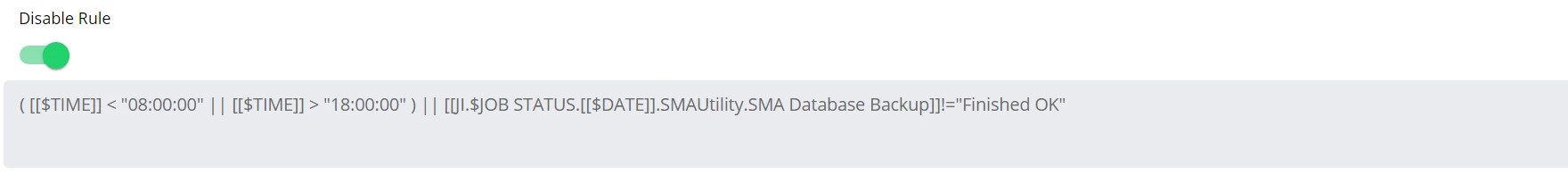 The button will be disabled if we're outside of the working hours OR if the SMA Database Backup job isn't "Finished OK". The rule will be (A OR B) OR C.