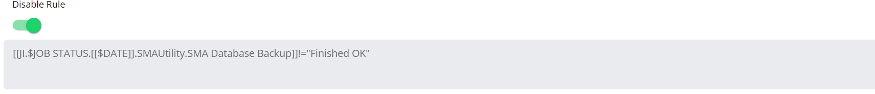 In the first example, we want to disable the button if a job isn't in a "Finished OK" status yet. Here, we don't want a user to start a process until the job "SMA Database Backup" from the schedule "SMAUtility" isn't completed.