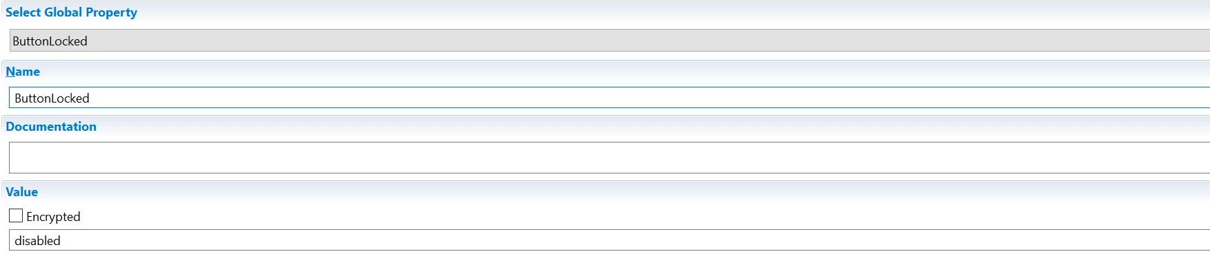 It's possible to lock the button using the value of a Global Property (not necessary a "true" or "false"). It can be useful to lock the button and unlock it when the property is updated automatically or not.