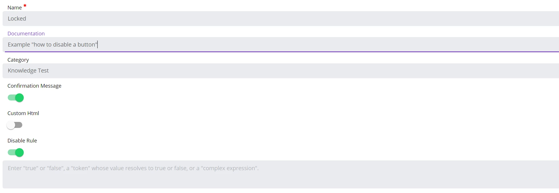 To disable a Self-Service button, you first need to enable the "Disable Rule". Once enabled, it will display a field where it's possible to set a token whose value resolves to true or false, or a complex expression allowing us to create a more elaborated rule.